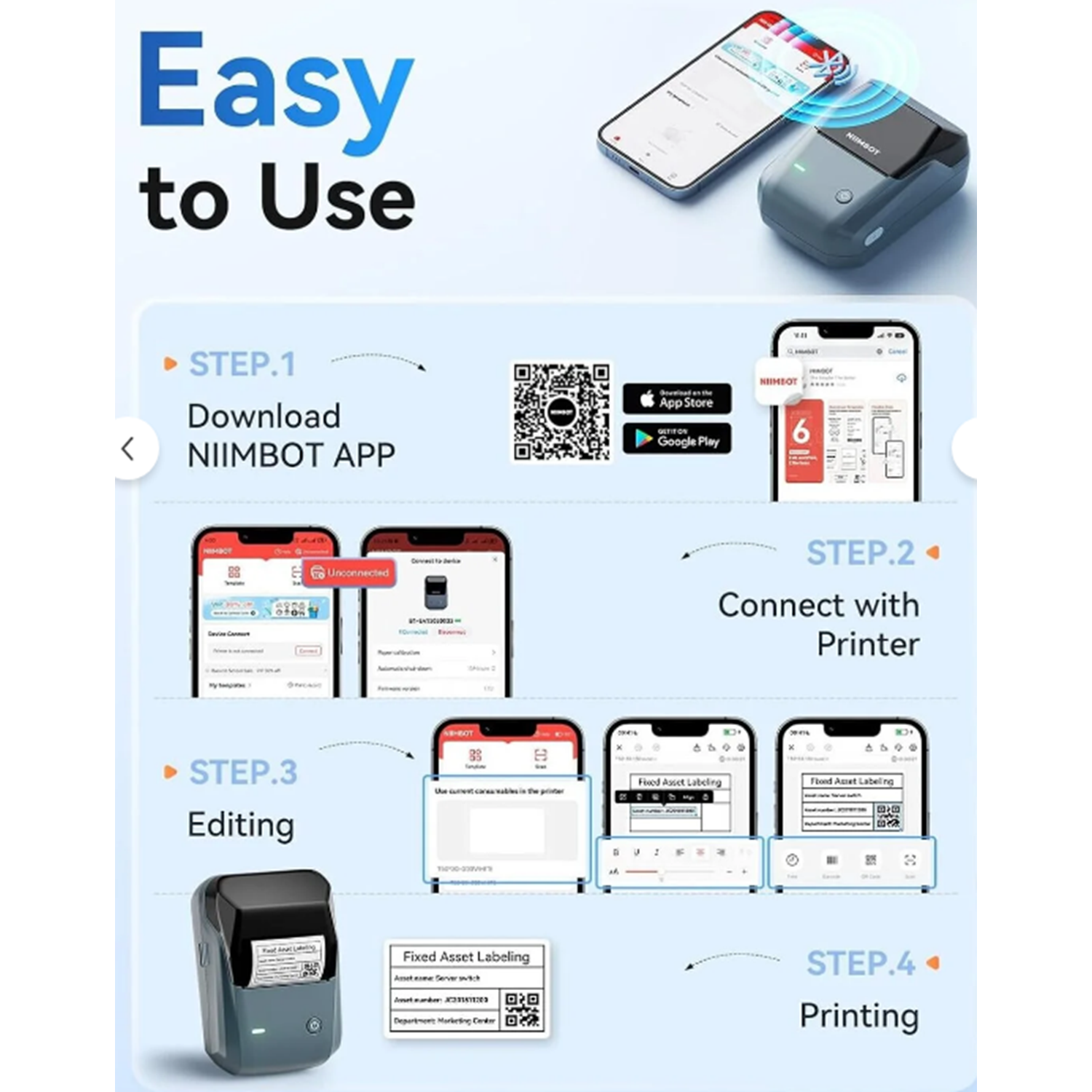 rendySell NIIMBOT B1 Etiket Makinesi, Otomatik Tanımlamalı Bluetooth Taşınabilir Etiket Yazıcısı, O