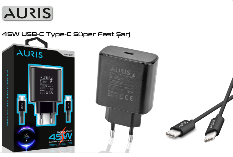 AURİS 45 WATT TYPE C Süper Hızlı Şarj Cihazı + Kablo