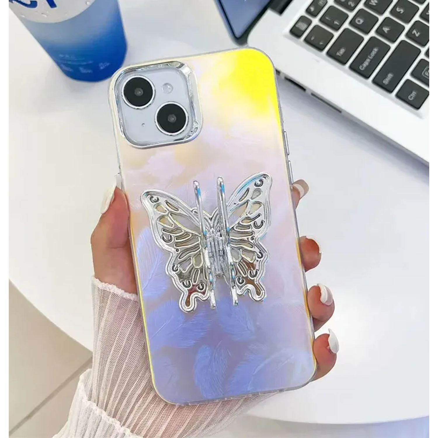Apple - iPhone 13 Zebana Standlı Kelebek Silikon Kılıf